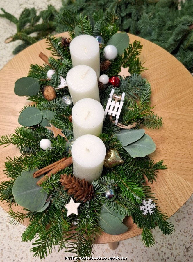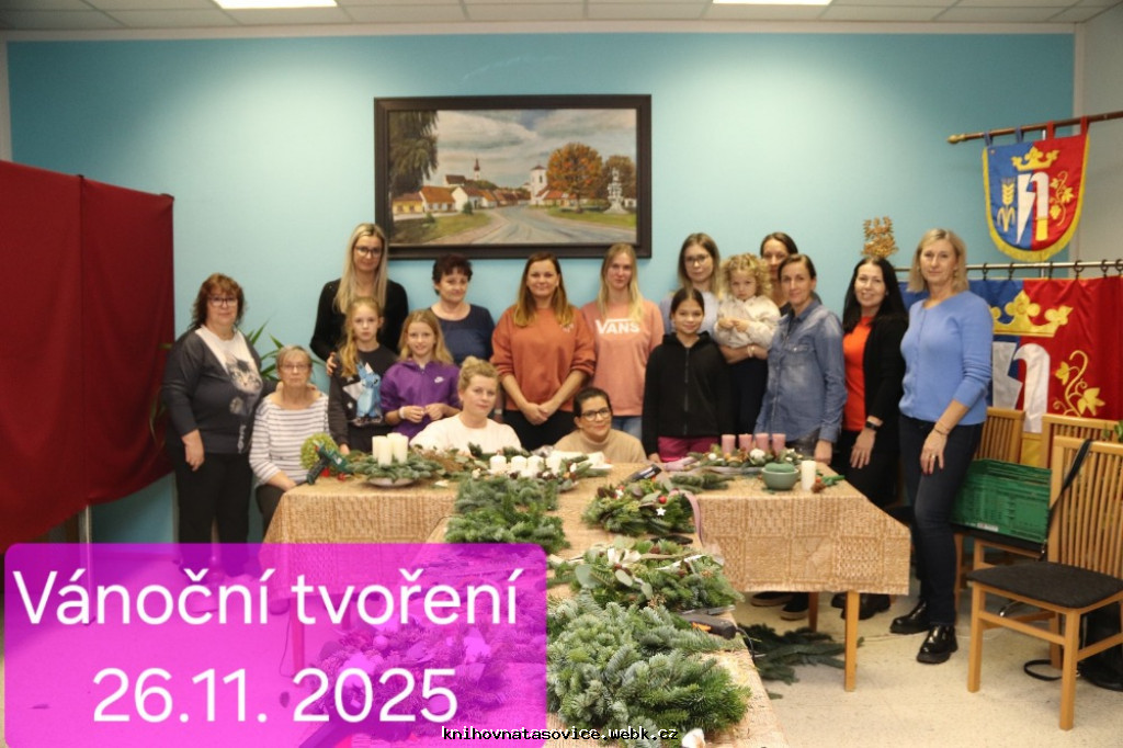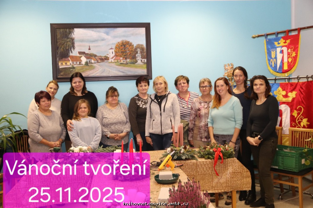 Vánoční tvoření adventních dekorací 25.11 a 26.11. 2025 v Místní knihovně s paní Martou Nesnídalovou. Moc děkujeme Martě za čas, materiál, rady a nápady, Všem přítomným za účast a přízeň, kterou akcím knihovny zachovávají. Děkuji p. Šimíkovi za pořízení fotografií na této krásné akci.